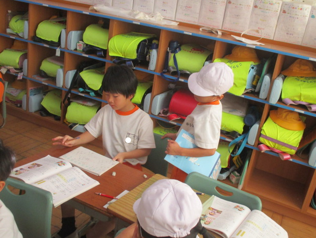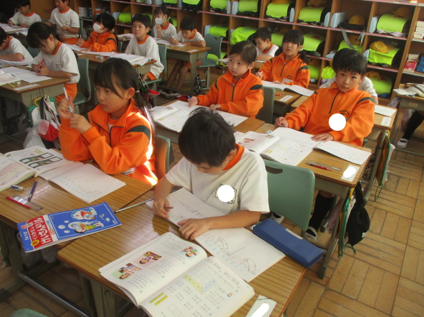 1組さん 2組さんと それぞれ算数の時間。どんどん難しくなりますが、しっかりと取り組んでいます。