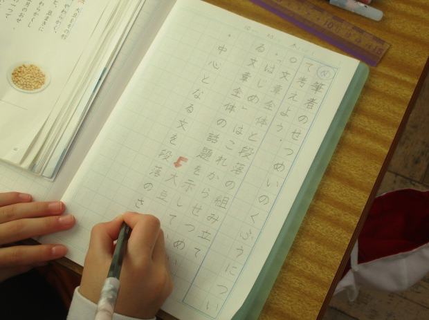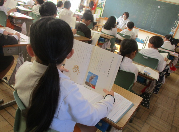 1組さんは国語の時間。すがたをかえる大豆を学習中です。読む力を確かめました。
