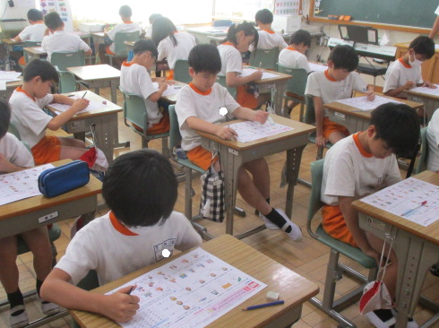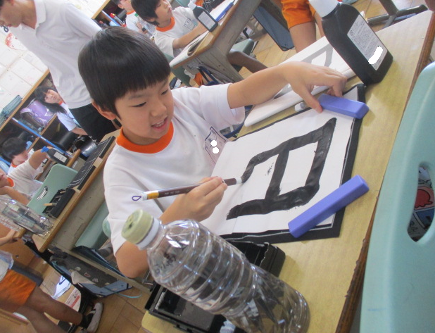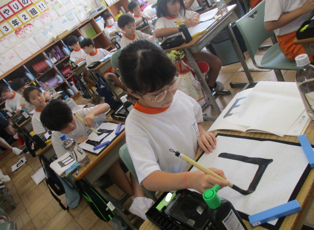 2組さんは、書写の時間。今日は「日」です。うまく書けていました。