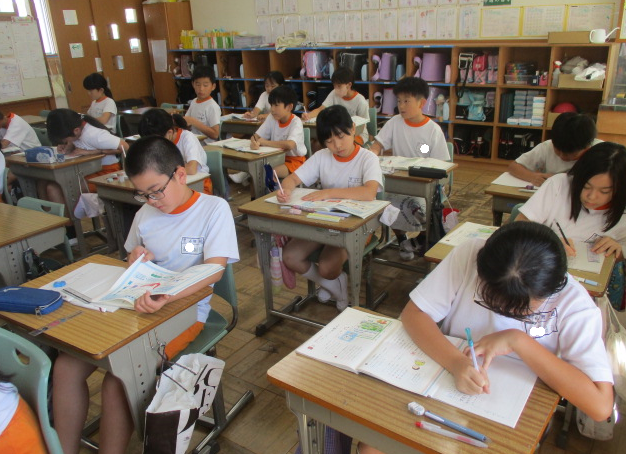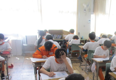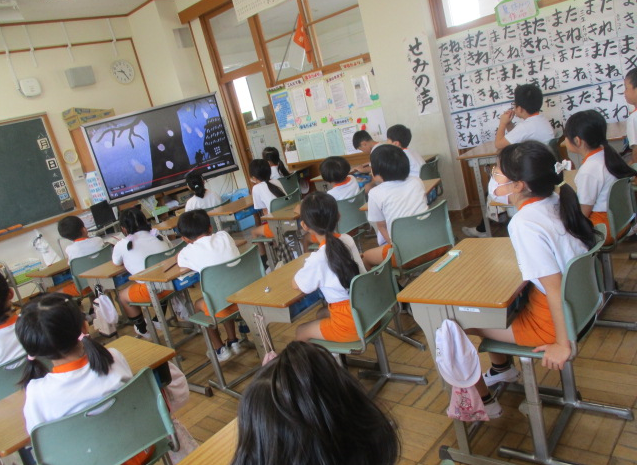 2組さんは理科の時間。自由研究の発表中。発表では「ビーチコーミング」という海岸に流れ着いた様々なゴミ(諸外国)から考察する発表をみせてもらいました。すばらしいですね。