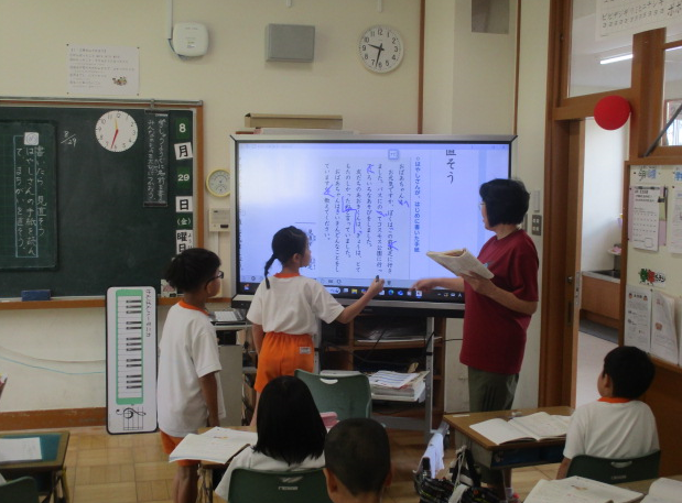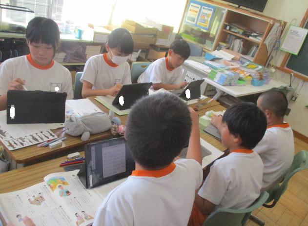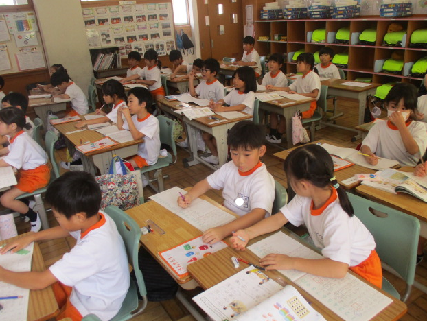 1組さんは国語の時間。お手紙の添削「書いたら見直そう」の学習中。間違いはどこでしょう。