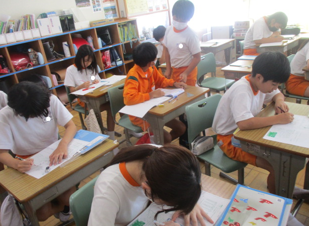 1組さん・2組さん・3組さんと ともに図工の時間。