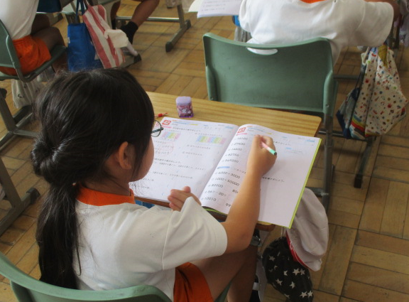 2025年8月29日 10時45分1組さんは算数の時間。大きい数の大小関係を等号や不等号を使って比べる学習中。