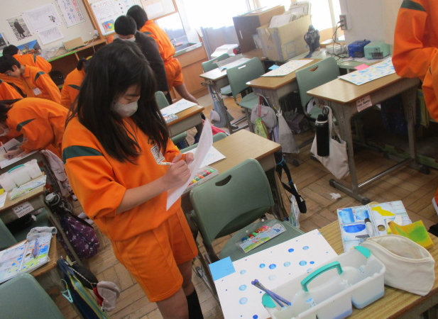 1組さんは、図工の時間。市保健センターの保健師さんが講師として思春期講座をひらいていただきました。