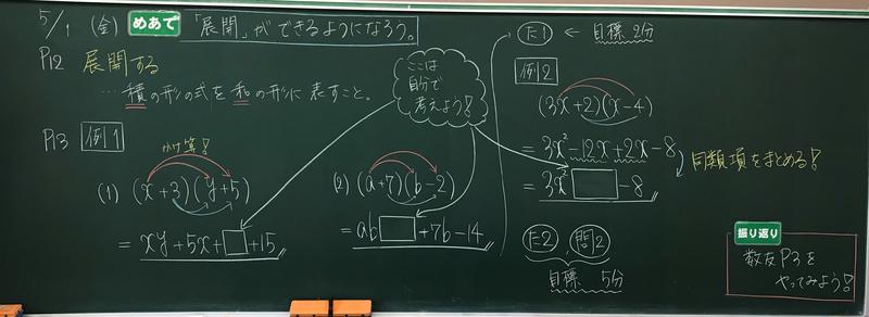 板書で空欄になっている所は、自分で考えて適切な数式を書き入れましょう。
