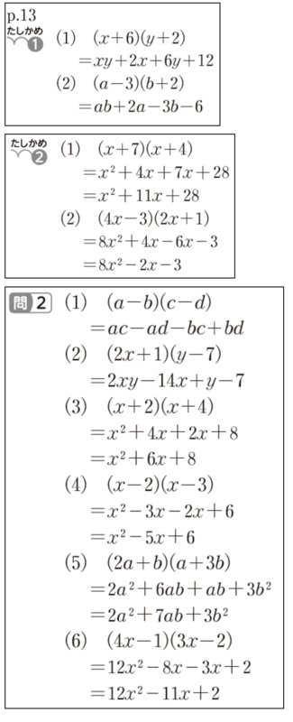 1 教科書P13を見ながら、板書事項の例1を授業ノートに書きましょう。板書で空欄になっている所は、自分で考えて適切な数式を書き入れましょう。