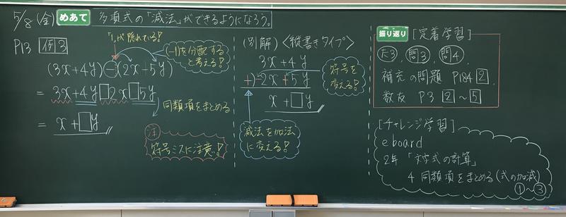 板書で空欄になっている所は、自分で考えて適切な符号や数字を書き入れましょう。
