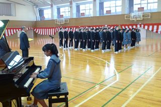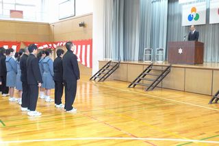 各学年代表生徒からそれぞれの学年を振り返っての発表を行いました。そして校歌を斉唱しました。