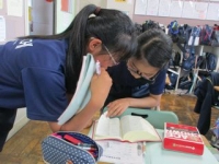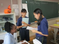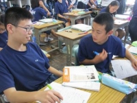2017年10月2日 18時04分「友達を紹介しよう」の学習です。友達にインタビューをしながら,友達の特徴や好きなもの,欲しいものを英語で表現します。生徒達は,友達から聞いたことを三人称単数の「S」に気を付けながら書いていました。その後,ペアで練習し合い,最後にALTの先生に聞いてもらいました。