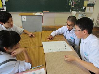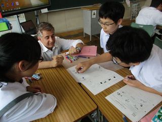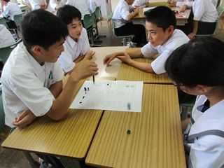 2018年7月6日 17時54分英語の授業では,サイコロを振ってコマを進め,そのマスの質問に英語で答える学習を行っていました。