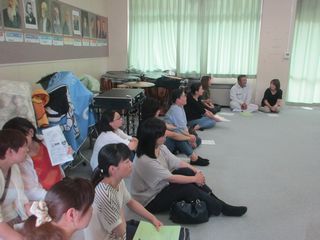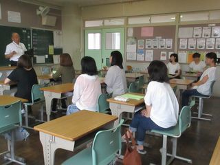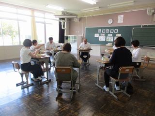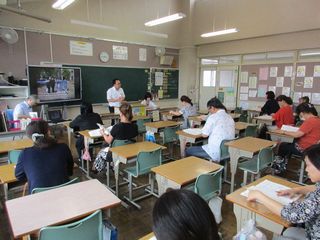 学年懇談会の様子。保護者の皆さんと1学期の学習や生活などを振り返ったり,夏休みの生活等について確認したりしました。