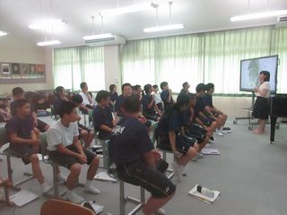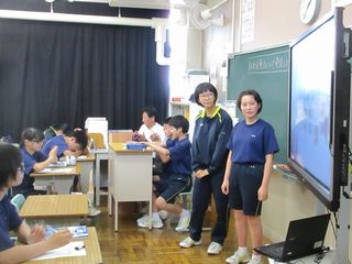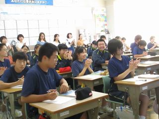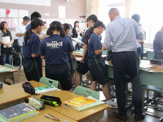 授業参観の様子。3年生は社会,2年生は英語,1年生は音楽と担任の先生の授業を参観していただきました。