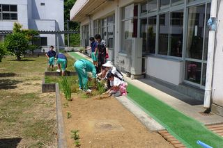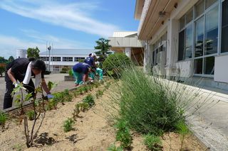 今日試合のない剣道部と柔道部のみなさんが、花壇の整備に取り組んでくれています。