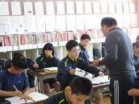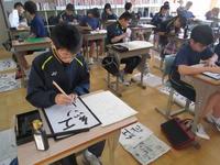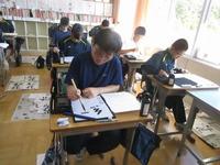2年生は「紅花」に取り組んでいます。本時のめあては,行書の形の変化や筆順の変化に気を付けて書くことです。生徒達はよく手本を見ながら丁寧に書いていました。次の時間が清書になります。清書した作品は文化祭で掲示する予定です。