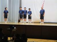 体育館のステージでは,各学年の発表の練習が行われています。立ち位置や声の出し方,タイミング等を確認しています。