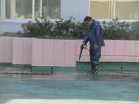 校長先生が中庭を高圧洗浄機で掃除してくださっています。