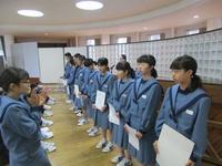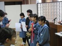 2020年1月8日 13時13分始業式が終わったあとに賞状伝達を行いました。英検,音楽祭創作相馬地区大会,県の新人大会,日本管楽コンテスト,市美展,相馬造形秀作審査会,スクールチャレンジ南相馬市大会,市総体バドミントン大会,アンサンブルコンテスト相双支部大会の表彰です。皆さん,おめでとうございます。