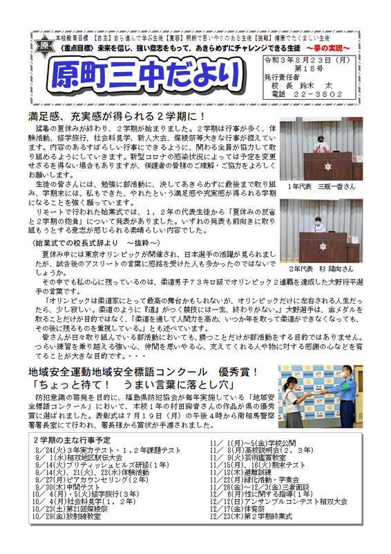 学校だより(原町三中だより)第18号を掲載します。