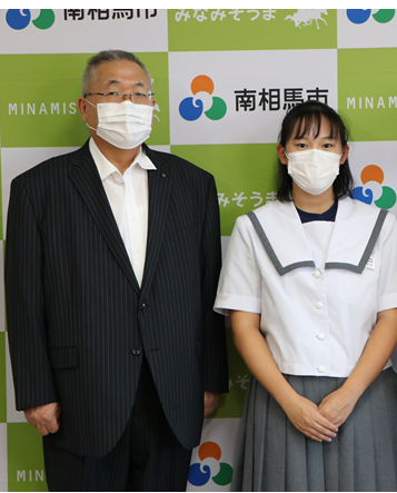第15回少年の主張大会南相馬市大会審査会において最優秀賞を獲得していた生徒の表彰式が9月10日(金)に市役所にて実施されました。この度、県大会出場の選考会である原稿審査を通過し、第43回少年の主張福島県大会の出場が決まりました。県大会はWEB開催となり、発表の様子は福島県青少年育成県民会議のHPに掲載されます。