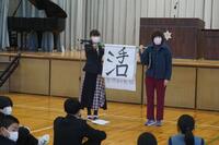 保健の先生からは、創作漢字をもとに冬休みの生活についての指導がありました。