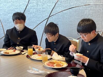 若干重めのまぶたをこすりながらも、しっかりと朝食を食べました。最後まで気を抜かず、体調と時間と気持ちのコントロールをしていきましょう。