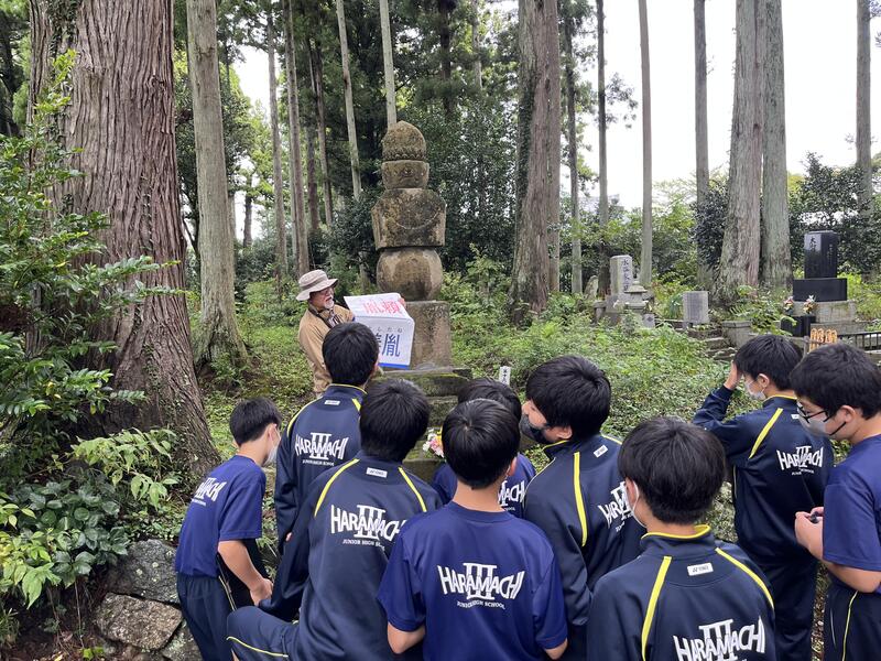 1年生は、総合的な学習の時間にふるさと南相馬の歴史や文化を学んでいます。26日、27日は市内の史跡や文化財を見学しました。1日目は、ロボットテストフィールドと南相馬市博物館。2日目は、桜井古墳、武山家住宅、朝日座、旧原町飛行場、太田神社、同慶寺、小高神社を見学しました。文化財課の森様が同行し、丁寧に説明してくださいました。学習した内容を10月の文化祭でどんなふうに発表するのか楽しみです。