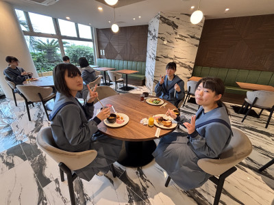 最終日スタート 2025年4月24日 07時16分 本日の朝も豪華な朝食を思い思い食べて、1日の英気を養っています。 夕方6時過ぎに到達いたします。 到着時刻は四倉SAを通過した時に連絡いたします。 本日も元気に出発します。