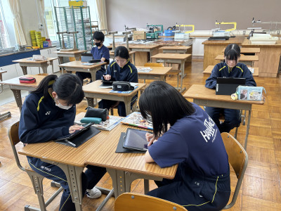 1人で考えたり、複数で考えたり、図書室へ移動して材料を探したりしながら、どんな場所で、何がある、どんな色で、どんな質感なのか、どんな感情や雰囲気なのか、生徒の頭上には「❓」がたくさん見えました。