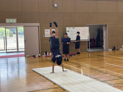 本日は前転を練習し、倒立の補助の仕方を教えてもらった後に一人で倒立に取り組む生徒もみられました。