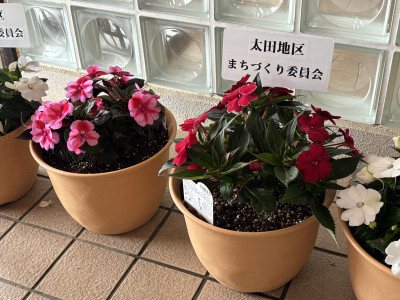 太田地区まちづくり委員会様より鉢花をたくさんいただきました。