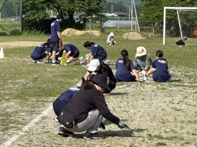 生徒数も少ないことから草の成長には敵いませんが、みなさまのご協力のもと校庭や敷地内の斜面などすっきりいたしました。