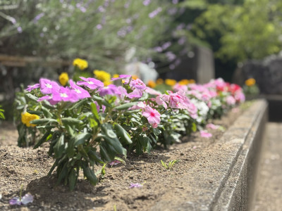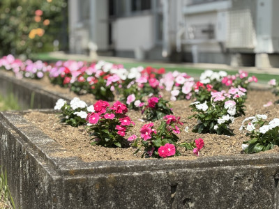 校舎の周りが一層華やかになり、たくさんの花を見ることで気持ちが安らぎます。