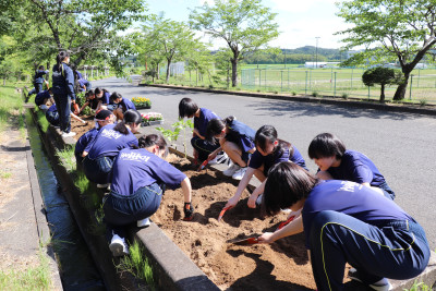2025年6月30日 10時09分金曜日の6校時に全校生で緑化活動を行いました。