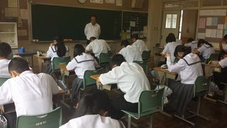 今日は、3年生の第2回実力テストです。真剣にテストに取り組んでいます。