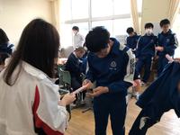 養護教諭の岡本先生より3年生一人一人に対し、小学校入学から中学校卒業までの間に成長した分の長さのリボンが手渡されました。リボンを見ながら9年間での成長ぶりを実感できたようです。育ててくれたおうちの方への感謝の気持を忘れず、明日の卒業をむかえてください。