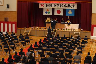 昨日3年生が卒業し、今日から4月8日の入学式までの間は1、2年生だけの生活となります。3年生が中心となって進めてきた活動を1、2年生が担うことになります。石神中生の誇りをもって、よりよい石神中学校を1、2年生で創っていきましょう!