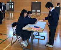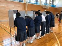 本日5、6校時に、「あなたの1票が来年度の石神中を決める!よく考えて投票を」をスローガンに生徒会役員選挙・立会演説会を実施しました。「会長」「副会長」「書記」「会計」に1、2年生10名が立候補し意気込みを発表しました。今回の選挙の実施にあたっては、今年度も南相馬市選挙管理委員会様にご協力をいただき、実際の選挙で用いられる記載台、投票箱、投票用紙を使わせていただきました。選ぶ側も立候補者一人一人の思いをしっかり受け止め、投票の手順と諸注意を守り真剣な態度で投票しました。