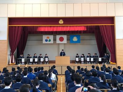 大震災から8年が経過しましたが、復興は道半ばです。生徒の皆さんには地域の未来を担うことになる中学生として、「何かできることはないか」と考え、行動していってほしいと思います。