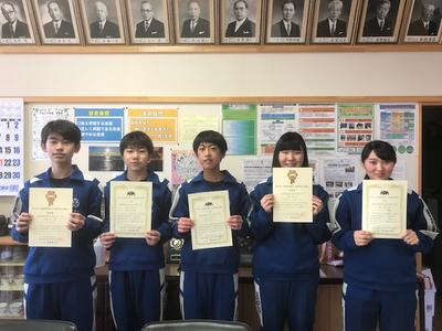 なお、公募展には2年生が応募しており、佐藤春人君、坂本陽菜さんの作品が奨励賞を受賞し、羽山琉生君、峯田陽菜さん、坂本健太君の作品が入選しました。