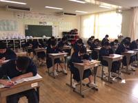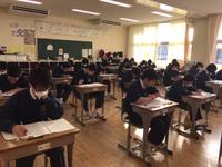 本日1月9日(火)、1・2学年では冬休み課題テスト、3学年では校内実力テストを実施しています。冬休みの学習の成果を発揮すべく,生徒全員が真剣に問題に取り組んでいます。
