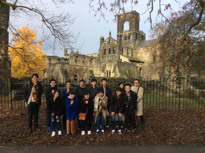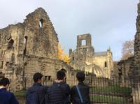 訪英団はノルマンディー公ウィリアム征服王に由来するカークストールアビィを訪れました。11世紀に建てられた教会や修道院が、16世紀のヘンリー8世の時代にイギリス国教会の成立とともに解散させられ廃墟となった様を見学し、イギリスの歴史、文化に触れることができました。