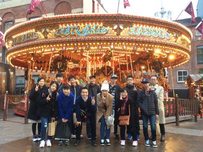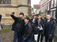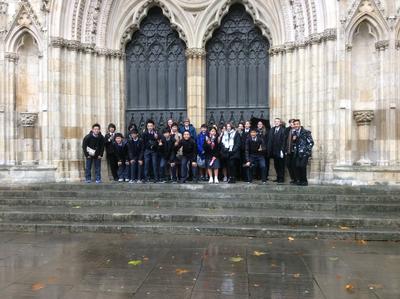 現地時間11月20日、午前8:30、訪英団生徒11名はホストファミリーに送られて学校に集合し、ホームステイ先のロセット校生とスクールバスでヨーク市を訪れ、10:00よりThe York selfie challenge!という活動に取り組みました。冷たい雨が降る中での活動でしたが、ヨーク市内を散策しイギリス国立鉄道博物館やヨーク大聖堂(York Minster)などを見学しながら指定された目的地を見つけ、そこでセルフィーを撮るという活動を通し、互いに交流を深めることができました。生徒達はホームステイ前には期待とともに不安もあった様子でしたが、活動後には安堵の表情が見られるようになりました。