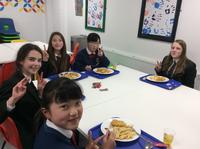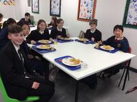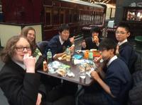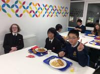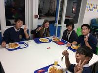 現地時間11月21日(水)18:00より、訪英団生徒はロセット校ダイニング・ホールで、ホスト生徒と夕食をとりました。メニューは、イギリスを代表する料理の一つフィッシュ・アンド・チップス。タラのフライにポテトフライを添えたものです。夕食の後にはカラオケも楽しみました。