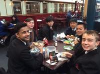 昼食はレストランでイギリス風ソーセージ、マッシュポテト、グレービーソースなどの伝統的なイギリス食のコース料理をいただきました。