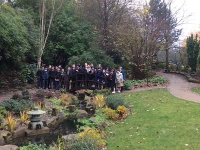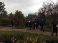 昼食のあと、ハロゲート市内の Valley Gardensを訪れ、その中の日本庭園を散策しました。この庭園は、1930年代からあった日本庭園を、日英交流の証として、伝統を大切にしながらも散策して楽しめるようにデザインし直し、先月、駐英日本大使を招いてリニューアルオープンしたものです。また、公園再建の際にはロセット校生が案内板やパンフレットを授業の一環でデザインしたということです。今日は再建にあたって寄付金を集めるところから尽力された委員会の方に案内をしていただきました。
