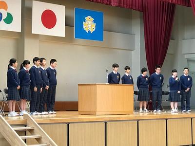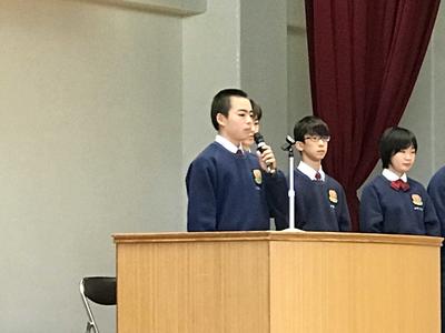 14:25より本校体育館において訪英団激励会を行いました。生徒会長からの激励を受け、訪英団を代表して荒金里紀君が、「学校や地域の代表としての自覚を持ち、しっかり交流活動をしてきます。」と力強く決意を述べました。