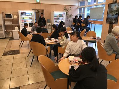 おはようございます。6:30に起床し、7:00から朝食をいただいています。出国前の食事ということで、全員が和食をチョイスしました。
