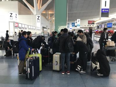 現地時間11月18日14:24、ロンドン・ヒースロー空港に着きました。天気は晴れ、気温は10℃と冬の寒さですが、訪英団生徒11名皆元気です。