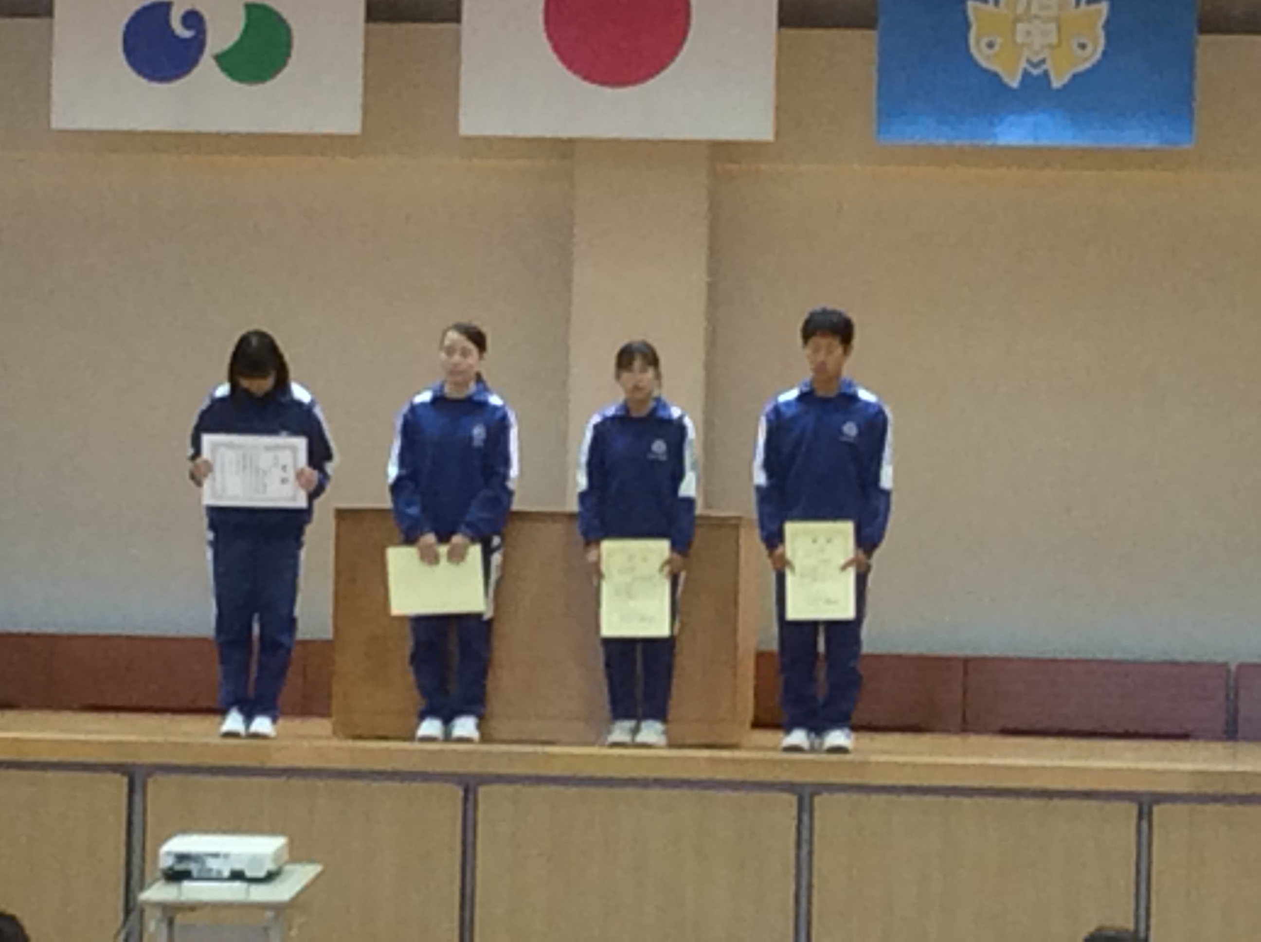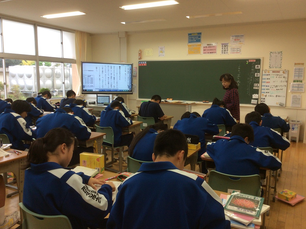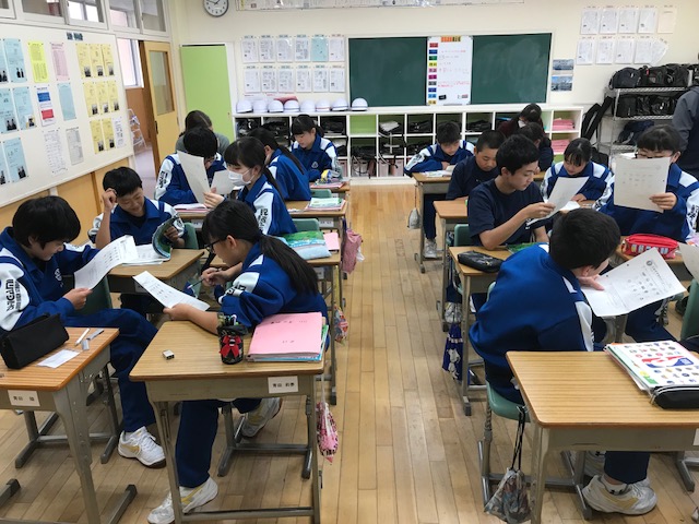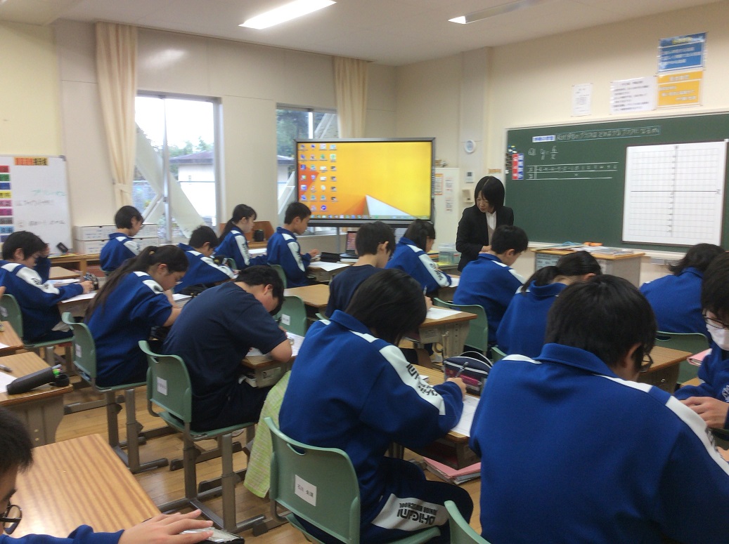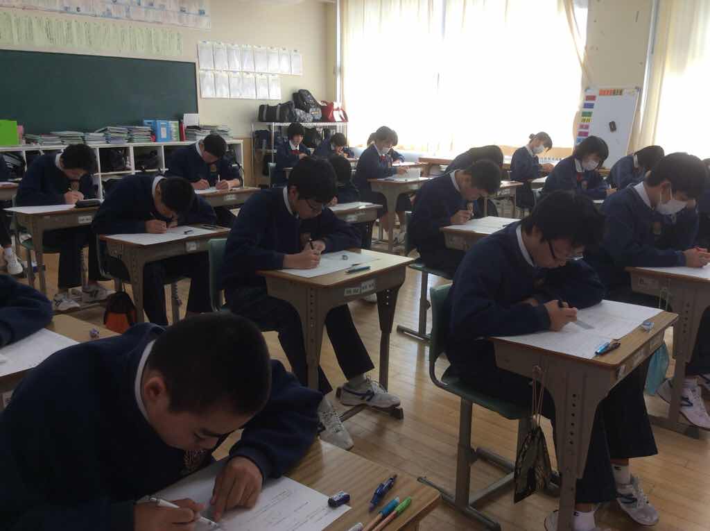 本日、3学年では実力テストを実施しています。生徒達は、朝自習の時間や休み時間にも集中して試験勉強に取組んでいます。総合学習での福祉体験、文化祭、介護教室などをとおして、進路に対する意識にも変化がでてきているようです。自身の進路目標実現に向けて精一杯の取組をして欲しいと思います。