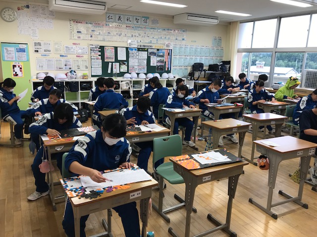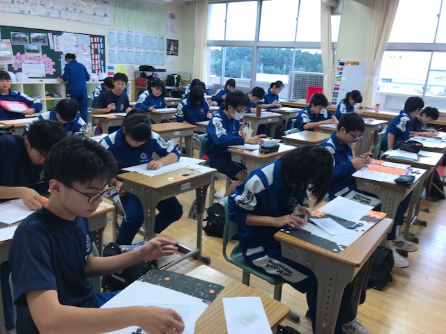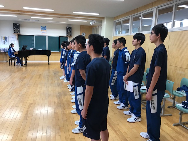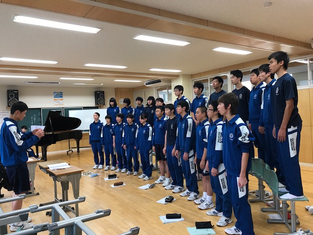 1校時の音楽室からは3年2組が歌うBest Friendの美しいハーモニーが聞こえてきました。合唱コンクールまであと12日。朝や放課後そして音楽での各学級の練習にも熱が入ってきました。